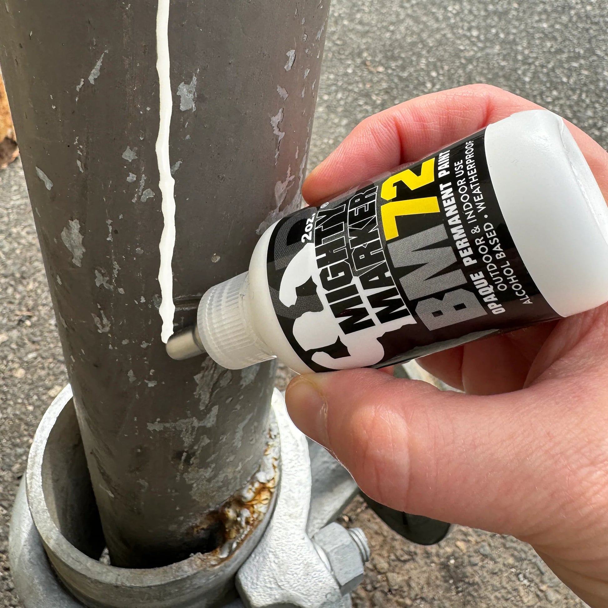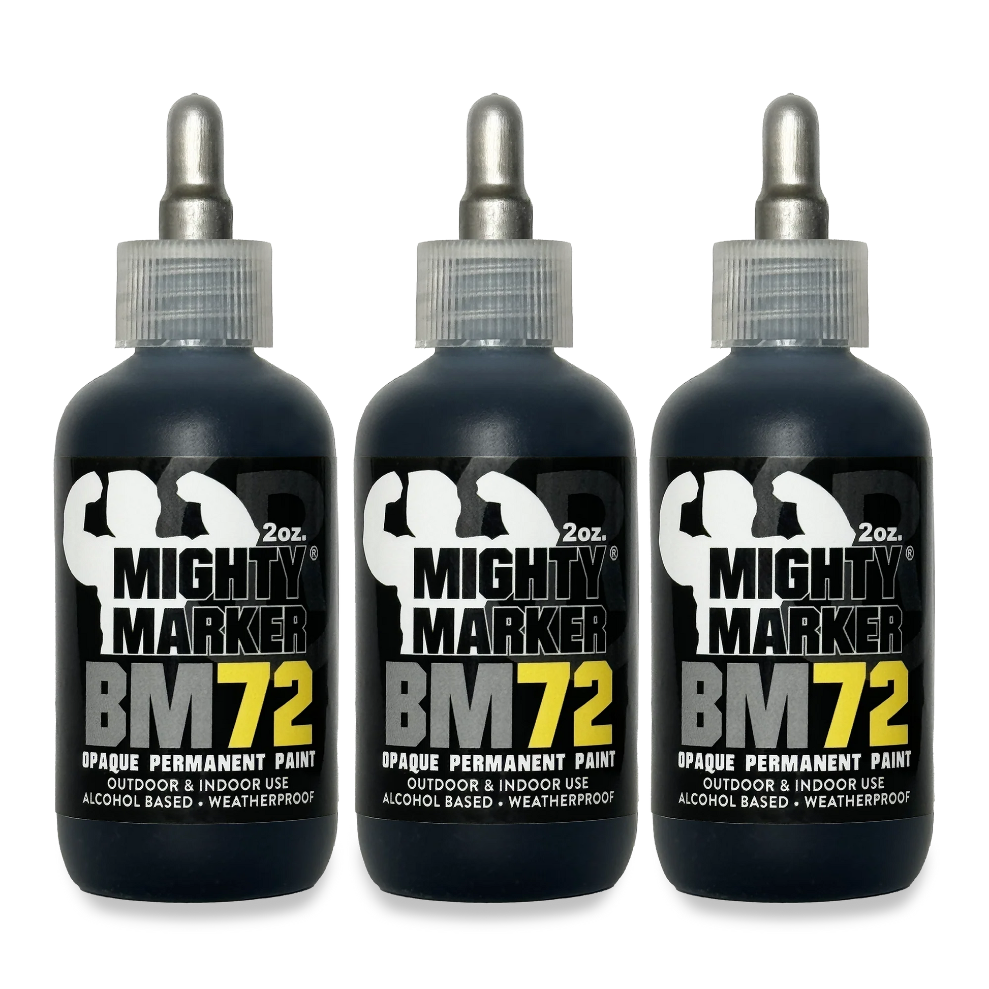 The Mighty Marker® BM-72 Bottle Marker is a squeezable 2oz bottle marker filled with high-performance alcohol based paint. Xylene Free, Lead Free, Safe to use, Works on metal, Glass, Plastic, Concretes, Lumber, pipes, Auto Parts, and more. Withstands all weather conditions after fully dried. International and Express shipping not available for this item.