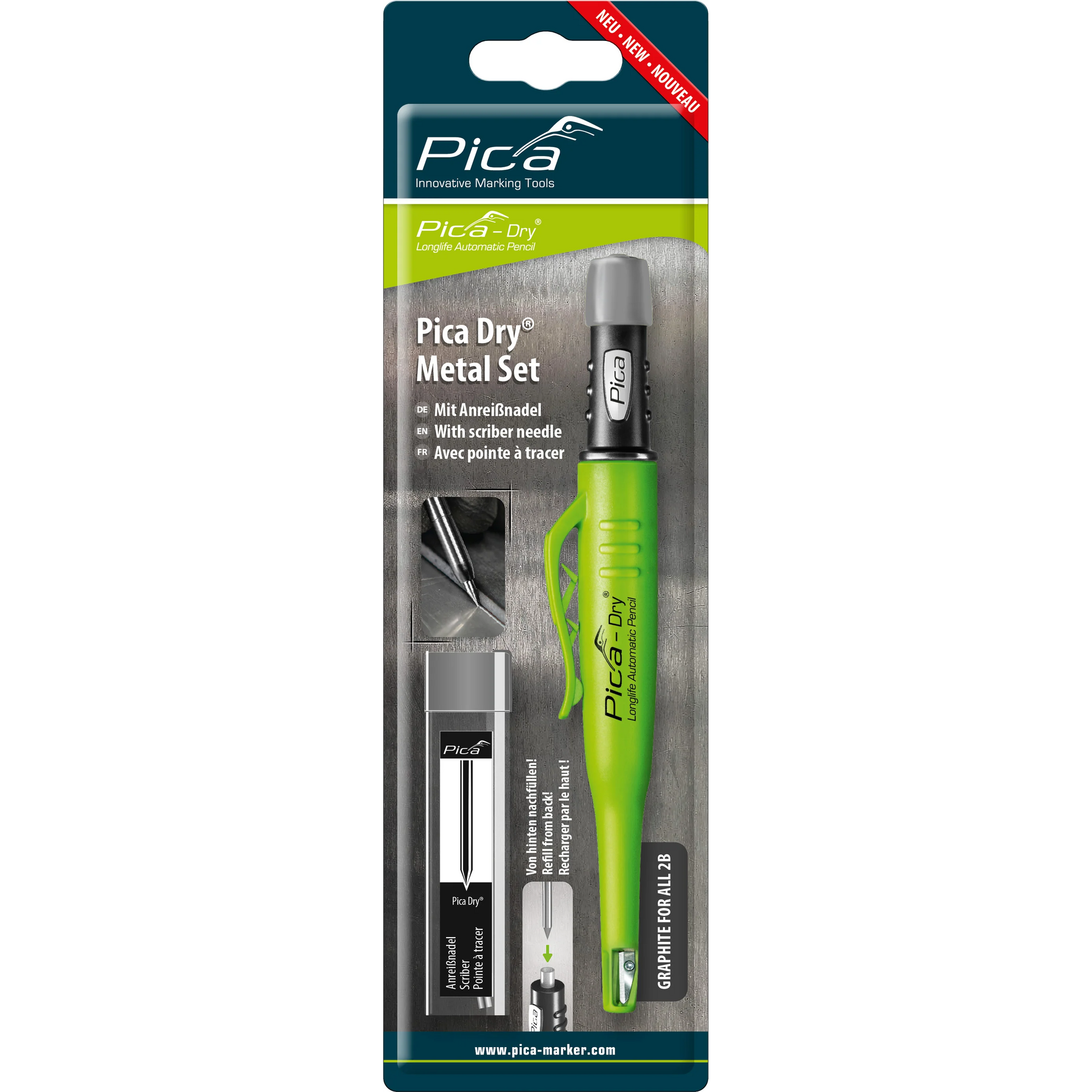 - Equipped with a standard graphite refill in 2B, the Pica-Dry is a game-changer in the marking industry. Its high-quality graphite guarantees crisp, bold markings every time.